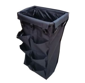 Мешок на тележку с карманами крепится к каркасу с помощью прочных липучек.