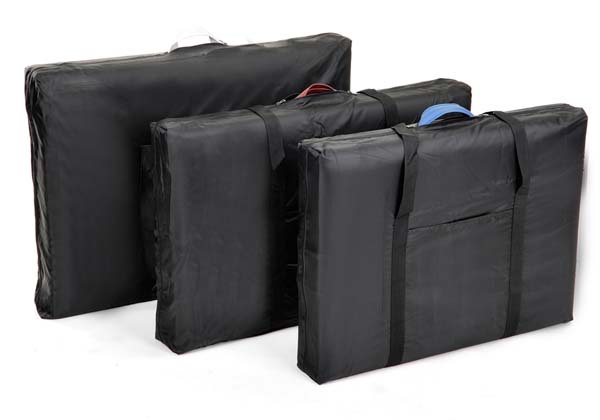 Стоит такая сумка совсем недорого, но она очень практичная и удобная. Это просто необходимая вещь для транспортировки массажного стола. Прослужит вам сумка очень долго, она полностью оправдывает свою цену. Выглядит сумка довольно спокойно и непримечательно, она не привлекает слишком много внимания. В большинстве случаев сумка простого чёрного цвета. Размер сумки вы можете выбрать сами, он будет зависеть от того, какой у вас массажный стол.
