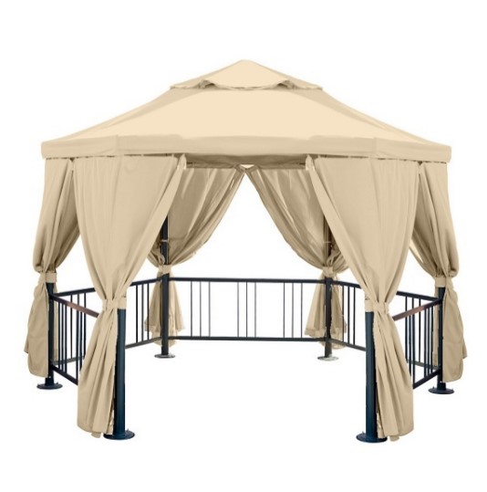 - Садовые тенты в виде крыш, комплекты для павильонов обладают прочностью на разрыв, не боятся ультрафиолета. Даже после нескольких теплых сезонов, на них не образуется прорех, нет выцветания. Магазинные изделия часто утрачивают свой «товарный» вид уже через сезон.