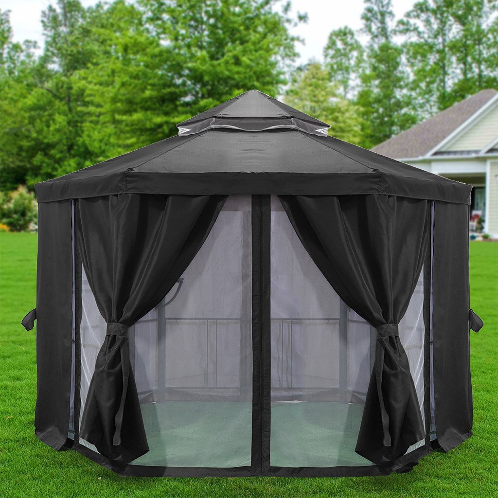 У нас вы можете приобрести тент, предназначенный для шестиугольного шатра с двойной крышей Green Days. Тент выполнен в сером цвете, произведён он в России, подойдёт для шатра, имеющего размер 1,75 х 1,75 х 2,75 м. Данный тент способен защитить от прямых солнечных лучей и осадков. Крыша изготовлена из ткани полиэстер с плотностью 160 г.