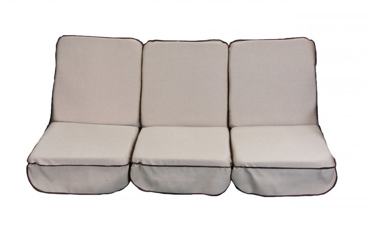 В комплекте находятся три отдельные подушки, предназначенные для садовой качели. Длина составляет 168 см, а толщина 8 см. У каждой подушки есть сидение и спинка, они скреплены друг с другом. На верхней и нижней части изделия располагаются молнии, благодаря этому чехлы снимаются, а также стираются в стиральной машине. Для того, чтобы подушки не сползали во время раскачивания, есть завязки для фиксации. В качестве наполнителя используется поролон. Вся продукция сертифицирована и безопасна даже для людей с аллергией и детей. Для того, чтобы приобрести данную продукцию, вам просто нужно добавить товар в корзину и оформить заказ.