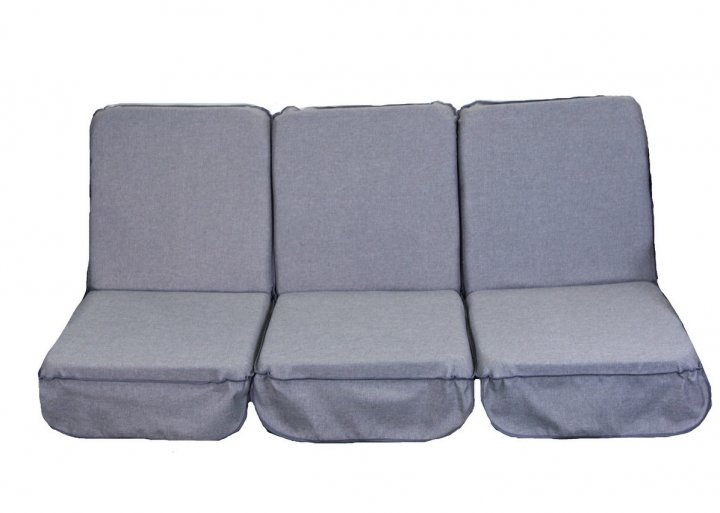 У нас вы можете приобрести комплект подушек, предназначенных для садовой качели, длина сидения с учётом двух подушек составляет 168 см, в комплекте находятся три подушки, у каждой есть спинка и сидение. На обеих частях подушки располагаются молнии, благодаря этому они снимаются и стираются в стиральной машине. У подушек высокое качество, они изготавливаются только из экологически чистых и безопасных материалов. Для того, чтобы подушки не сползали во время эксплуатации, по бокам есть завязки для фиксации. Для того, чтобы приобрести данную продукцию, вам просто нужно добавить продукцию в корзину и оформить заказ.