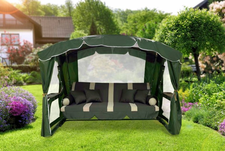 Благодаря использованию тентов для садовых качелей можно очень комфортно и красиво обустроить свой дачный участок. Такой тент защитит качели, и вы в любую погоду сможете отдыхать со своими друзьями и близкими. Мы предлагаем тенты, имеющие разные размеры, цвета и формы. Кроме того, тент может дополняться москитной сеткой и другими элементами при необходимости. В каталоге нашего интернет-магазина вы можете увидеть подробное описание абсолютно каждой модели с фотографиями и параметрами, описание материалов, формы, функционала.