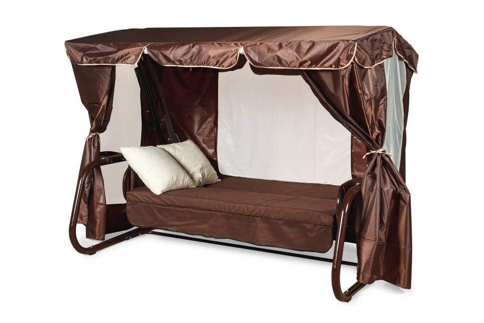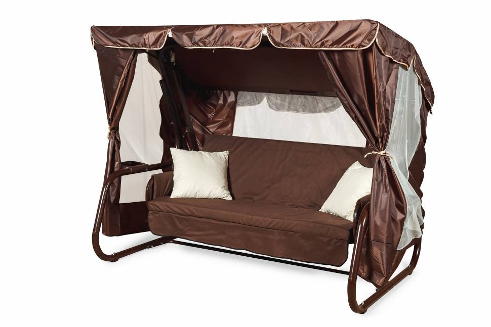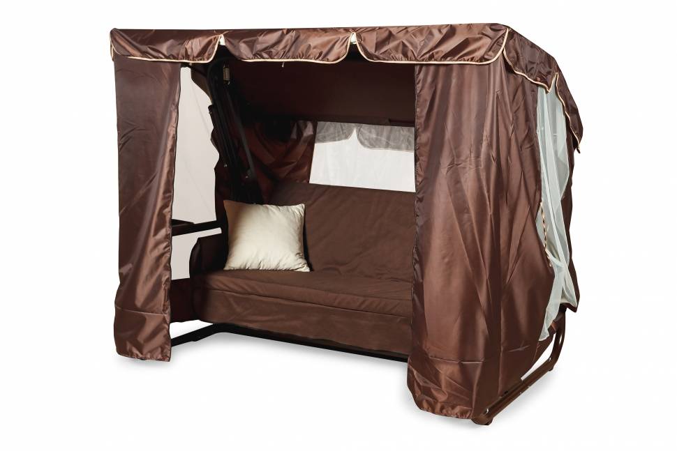 Тент с москитной сеткой на садовые качели Торнадо Premium шоколад